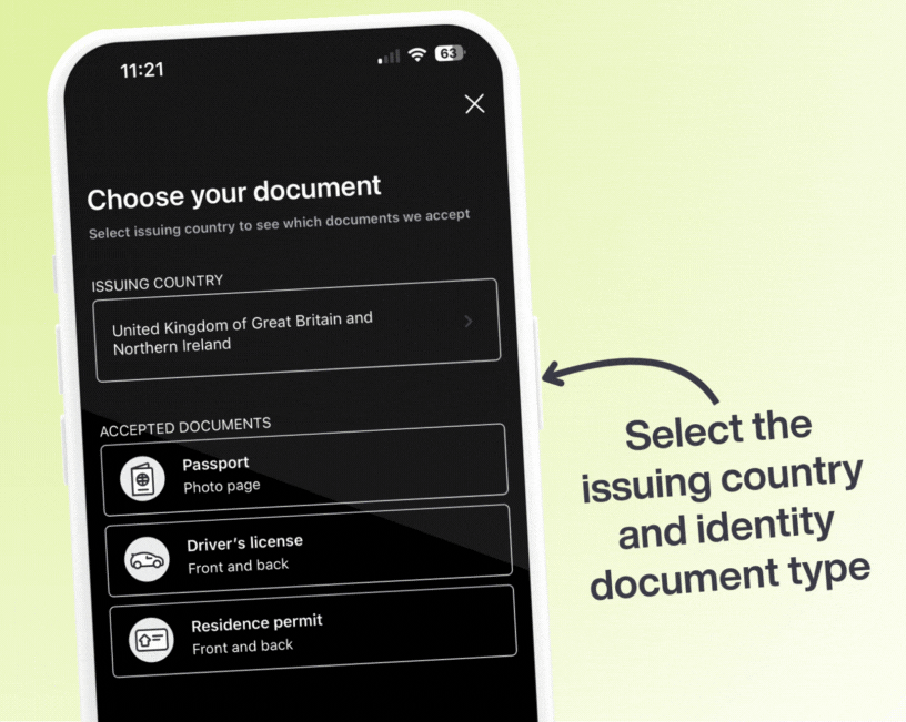 We use Onfido, a trusted identity verification provider, to securely check your document. This process includes: