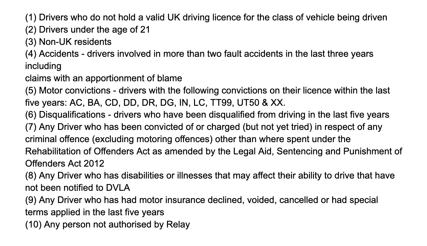 Please note: Couriers which have stopped working with Relay or have been off-boarded will fall under point 10 and won’t have insurance cover.