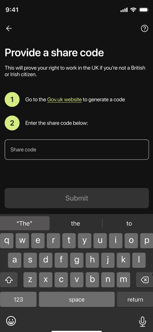 Once you’ve uploaded your document or share code in the app, our team will review and confirm your status before moving you to the next step.